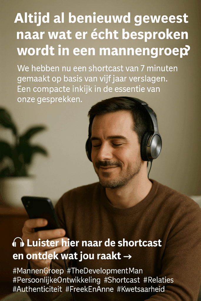 Voor velen blijft dit vaak een mysterie. Misschien heb je altijd al gewild dat je een “fly on the wall” kon zijn bij een bijeenkomst van een mannengroep. Goed nieuws! We hebben nu een shortcast van 7 minuten gemaakt op basis van vijf jaar verslagen van The Development Man. Een compacte inkijk in de essentie van onze gesprekken.